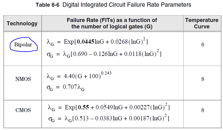 表8-6是各类集成电路的失效率公式,与门的数量有关。如下图
