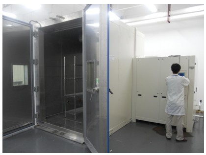 新增的两个步入式温湿度试验箱内部容积分别为10立方米与16立方米,可同时满足温度和湿度的测试要求,温度范围达到-65℃~90℃, 湿度范围20%~98%RH。其中16立方米步入式的内部工作室的尺寸达到W2500mm×D2500mm×H2600mm,10立方米步入式的内部工作室的尺寸为W2000mm×D2000mm×H2500mm。