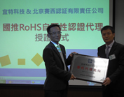 该负责人进一步说明,与宜特合作多年,深知宜特在绿色验证辅导上,具亚洲领先地位,在也藉此次国推RoHS认证制度的明朗化,正式授权宜特代理,相信宜特深厚的实力,将可有效协助台商,在国推RoHS认证上,进行专业性的辅导验证,建构通往大中国市场的绿色管道。