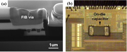 左二图: 利用FIB技术于IC上制作电容,并链接至内部讯号