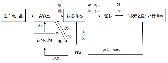 自1992年“能源之星”项目启动之日起,一直采取自愿性认证方式。即由生产商依据相关测试标准,向美国环保署提供自主执行的产品检测报告或第三方(无资质要求)的测试报告,待美国环保署审核确认之后,对相关产品给予列名,并授权该生产商可以针对该款产品使用“能源之星”标识,自行加贴在相关产品上。2009年6月开始美国审计总署对“能源之星”认证申请流程进行了调查,发现“能源之星”计划极易作假。2010年3月美国政府责任办公室提交了“能源之星”流程审计报告,报告宣布当时使用的“能源之星”流程对可能存在的欺诈和滥用缺乏防范,不足以防止厂商故意篡改信息。因此2010年4月14日,EPA和DOE联合宣布调整“能源之星”产品的认证过程,以确保只有符合要求的产品才能获准得到“能源之星”标签。新的认证制度自2011年1月1日起开始执行。依据新的认可证制度,制造商必须向美国环保署授权的第三方认证机构提交申请,同时在美国环保署认可授权的实验室进行产品检测。在获得测试报告后,交由认证机构对产品报告进行审核,经确认之后授予证书,最后由美国环保署将这些产品列在网上合格产品清单中。