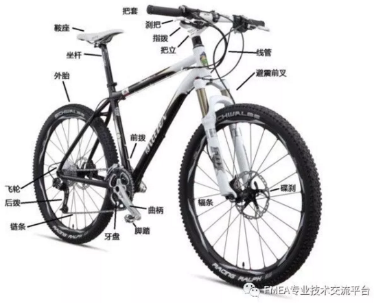 以自行车为例,自行车系统的FMEA分析范围,是把整个自行车作为一个系统,分析系统功能的集成以及各个子系统之间的接口。自行车系统的功能是确保系统以安全可靠的方式实现其预期功能,并确保自行车系统的整体风险较低。