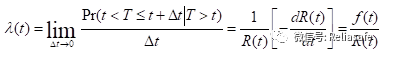 失效率是指已工作到t时刻的产品,在时刻t后位时间内发生失效的概率,记为