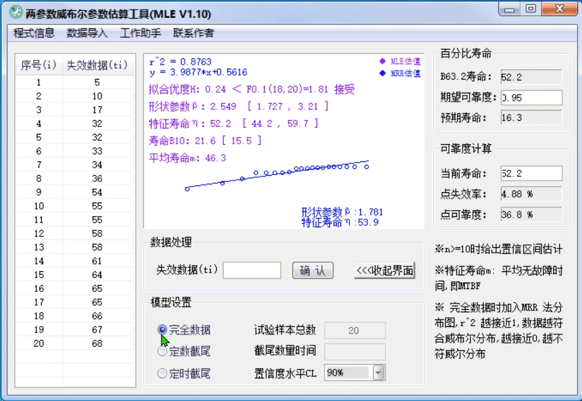 包含删失数据的可靠性分析,一般选择使用最小二乘法( R RX 、 R RY )、极大似然法进行。当删失数据较多时,建议选择极大似然法进行分析。