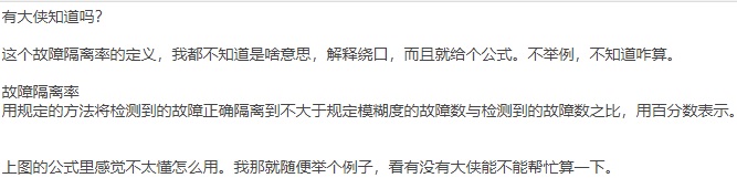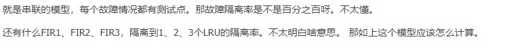 FIR 就是在这80个被正确检测到的故障中,能够被隔离到一个单元中的数量为40个,能够被隔离到两个单元中的数量为20个,那么 FIR=40÷80=50%(L=1),FIR=(40+20)÷80=75%(L≤2);