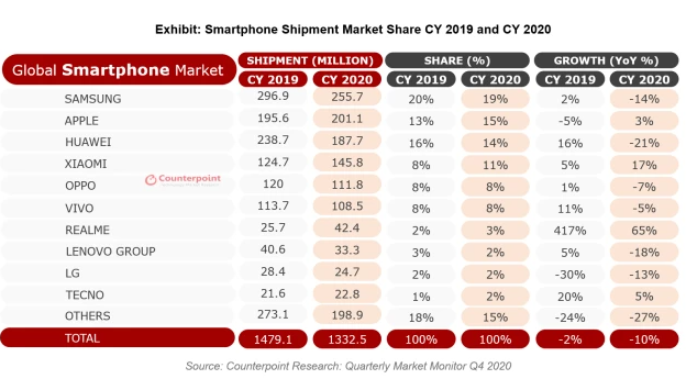 如今智能手机更新换代的速度日益加快,各大知名品牌每次推出新款手机,都会引发一次换机潮,虽然受疫情影响,2020年全球智能手机出货量总体呈下降趋势,整体下滑了12.5%。但是华为、OPPO、小米等国产品牌凭借出色的出货数据仍排在前列。