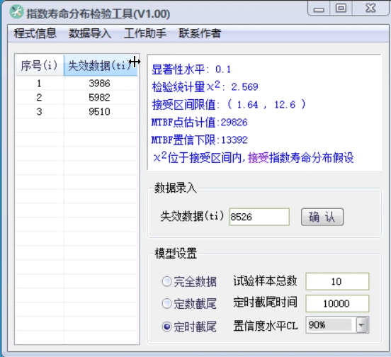 13.指数寿命分布检验工具(支持截尾数据,MTBF置信下限估值)
