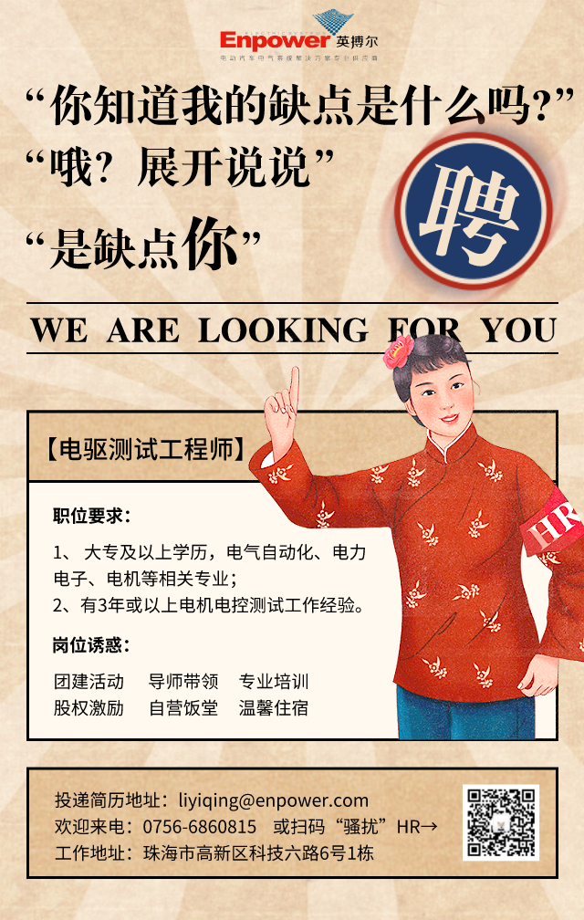 珠海英搏尔招聘【电驱测试工程师】若干名薪资10-15K,能力强者薪资更高!