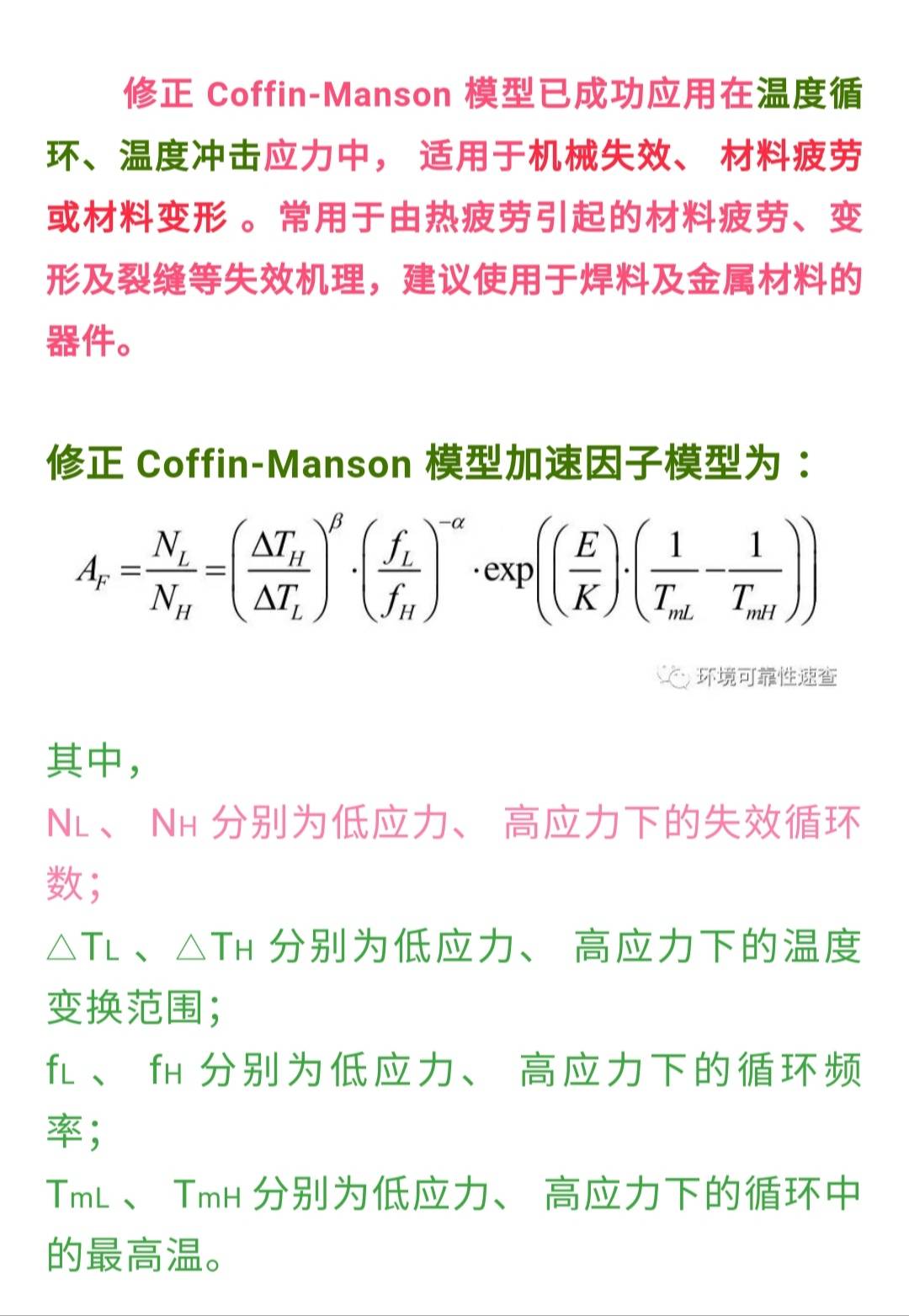 如下图,是修正科芬曼森模型,但是在有关文章上看到关于有铅焊点材料Ea/K=1414,无铅材料焊点Ea/k=2185,如果是这样。意思说有铅焊点材料和无铅焊点材料的活化能已经固定了,这应该不对吧,