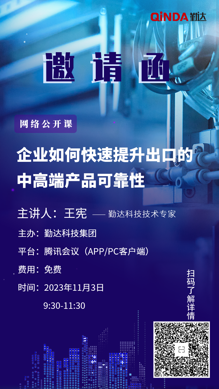 本次课题由勤达科技可靠性专家王宪老师开讲,以线上形式进行授课并交流,探讨我国出口产品的可靠性提升之道,欢迎大家踊跃报名参加,一起加入到我们的学习队伍中来。