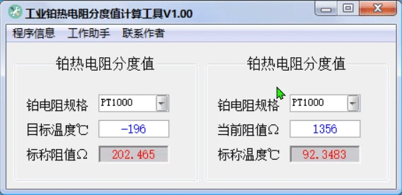 25.工业铂热电阻分度值计算工具(-200~850℃温度电阻换算)
