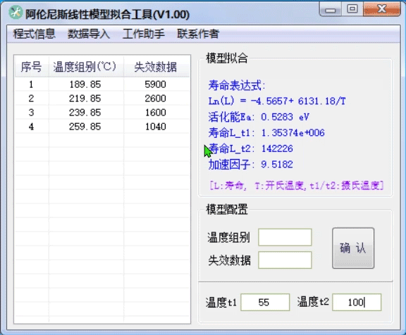 阿伦尼斯线性模型拟合工具(寿命L 、激活能Ea 、加速因子AF 估值)